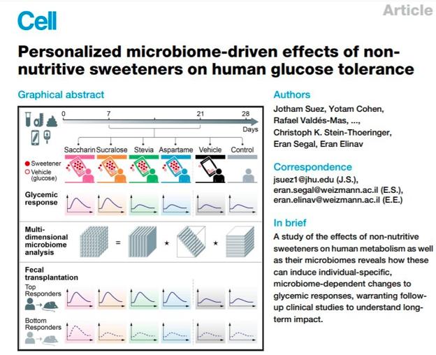 日前,有研究称,糖精和三氯蔗糖这两种人工甜味剂,尽管被认为不会增加血糖水平,但它们可能会通过改变人体肠道微生物,进而诱导改变血糖水平,相关研究成果登上了Cell杂志。