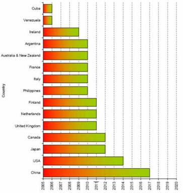 从全球照明市场的发展趋势来看,近年来白炽灯应用呈下降趋势,CFL处于强劲上升期(2007- 2012),LED 照明开始发展,HF-TL和HID正在发展。